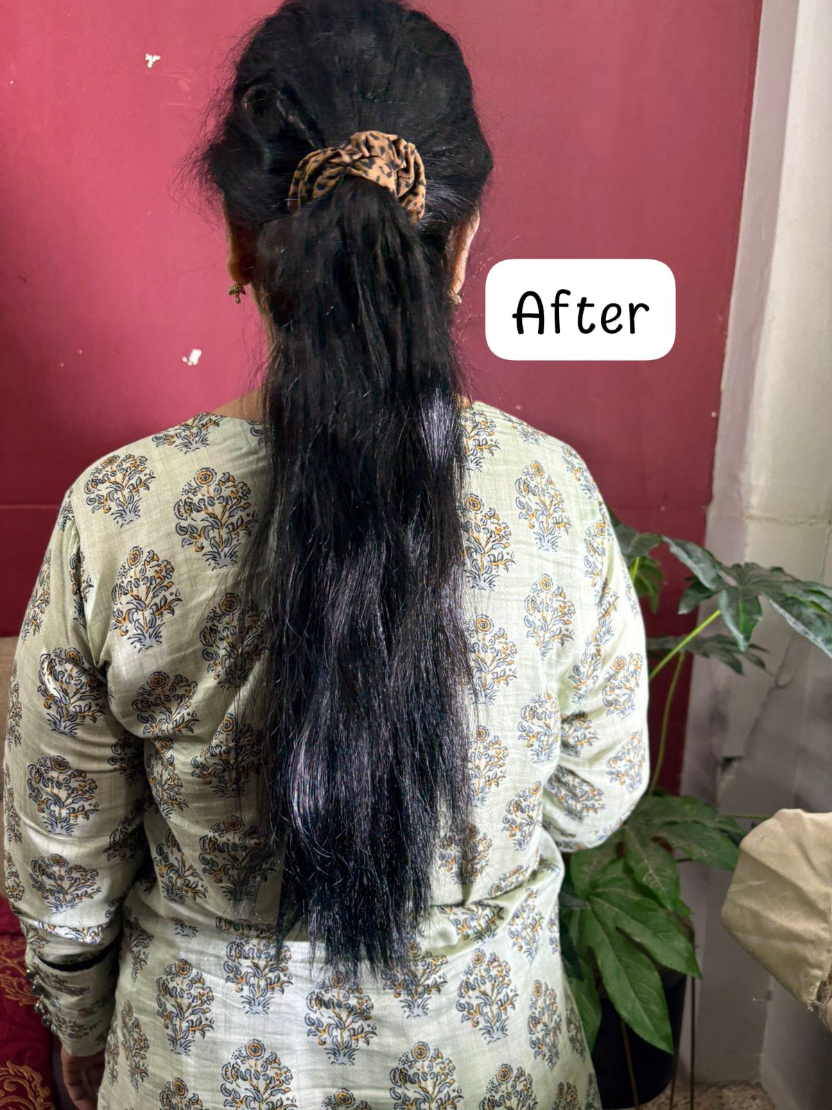 Oil bohot lightweight hai, sticky bilkul nahi. Main usually raat ko oiling karti hoon aur subha shampoo kar leti hoon. Hair fall noticeably kam hua hai aur hair growth bhi better feel ho rahi hai . Sabse achi baat yeh hai ke isme harsh chemicals nahi hain, pure herbal feel hota hai.