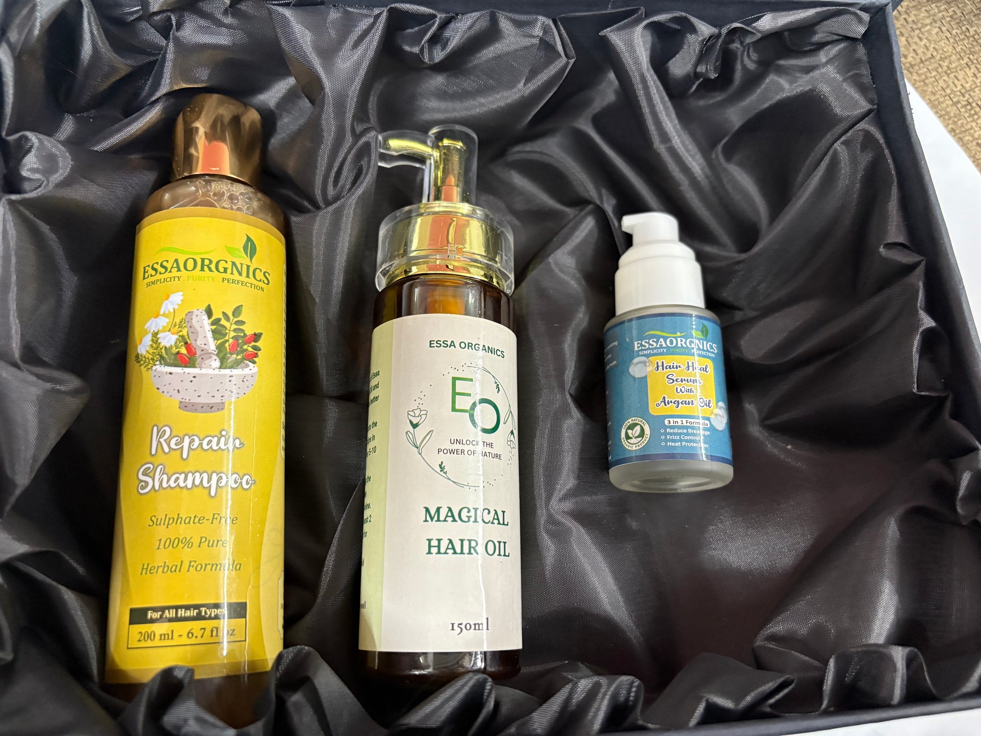 Transform your hair care routine with the EssaOrganics Complete Hair Care Bundle – the ultimate trio for stronger, shinier, and healthier hair.